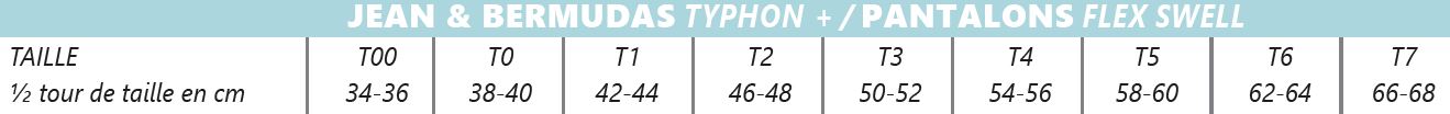 TAILLES : Taille 00 (34-36) à 7 (66-68)