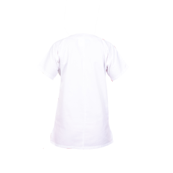 CARACTERISTIQUES : Col rond, manches kimono, 2 poches plaquées + parements contrastés, fente côté, fermeture par 5 pressions cachées, 1 poche poitrine + parement contrasté, hauteur milieu dos 75 cm