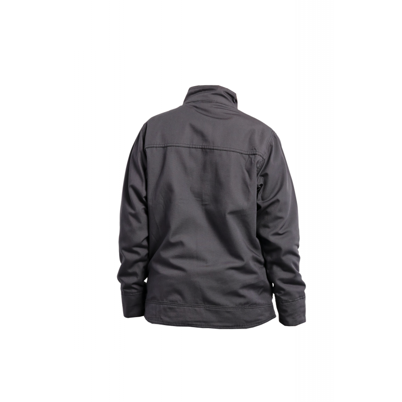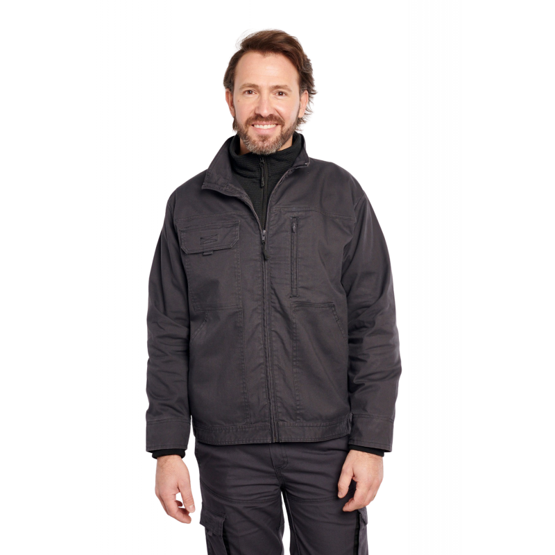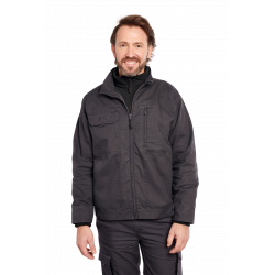 Descriptif : Col officier, protège menton, fermeture à glissière nylon bord à bord. Une poche poitrine verticale côté cœur fermeture à glissière. Une poche plaquée rabat velcro côté droit, 2 Poches basses ouvertes, Ceinture dos protège reins. Manches montées, poignets rapportés avec bord côte intérieur