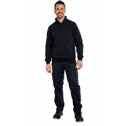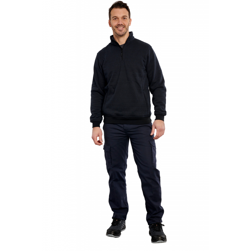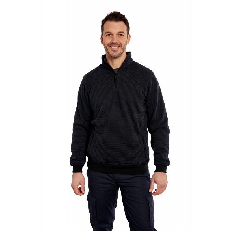 Descriptif : fermeture col zip nylon, avec protège menton, manches longues,  renfort coudes  toile Oxford, 2 poches basses zip nylon, poignets et bas bord-cote,